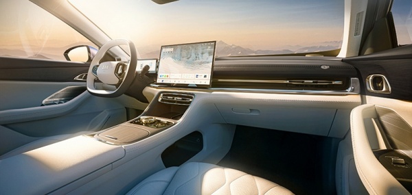 内饰方面,新车延续插混版布局, 预计采用15.4英寸大尺寸中控屏搭配10.2英寸液晶仪表,支持HiCar、FLymelink、ICCOA和CarPlay。**通道同样配备了旋钮、手机无线充电等。