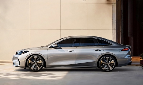 外观方面,新车延续家族设计,和插混版主要区别在于调整前后包围。前脸继续采用贯穿式大灯,尾灯细节有所升级。车身尺寸方面,新车长宽高分别为4935*1905*1500mm,轴距2845mm。